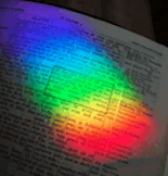 I was sitting in my favourite chair one cold, clear winters morning meditating (i.e. looking out the window) when I noticed a bright rainbow falling across a page of the open Bible lying next to me. It was from the prism in the window and was illuminating a previously outlined but long forgotten passage of scripture -- 1 Peter 5:10.